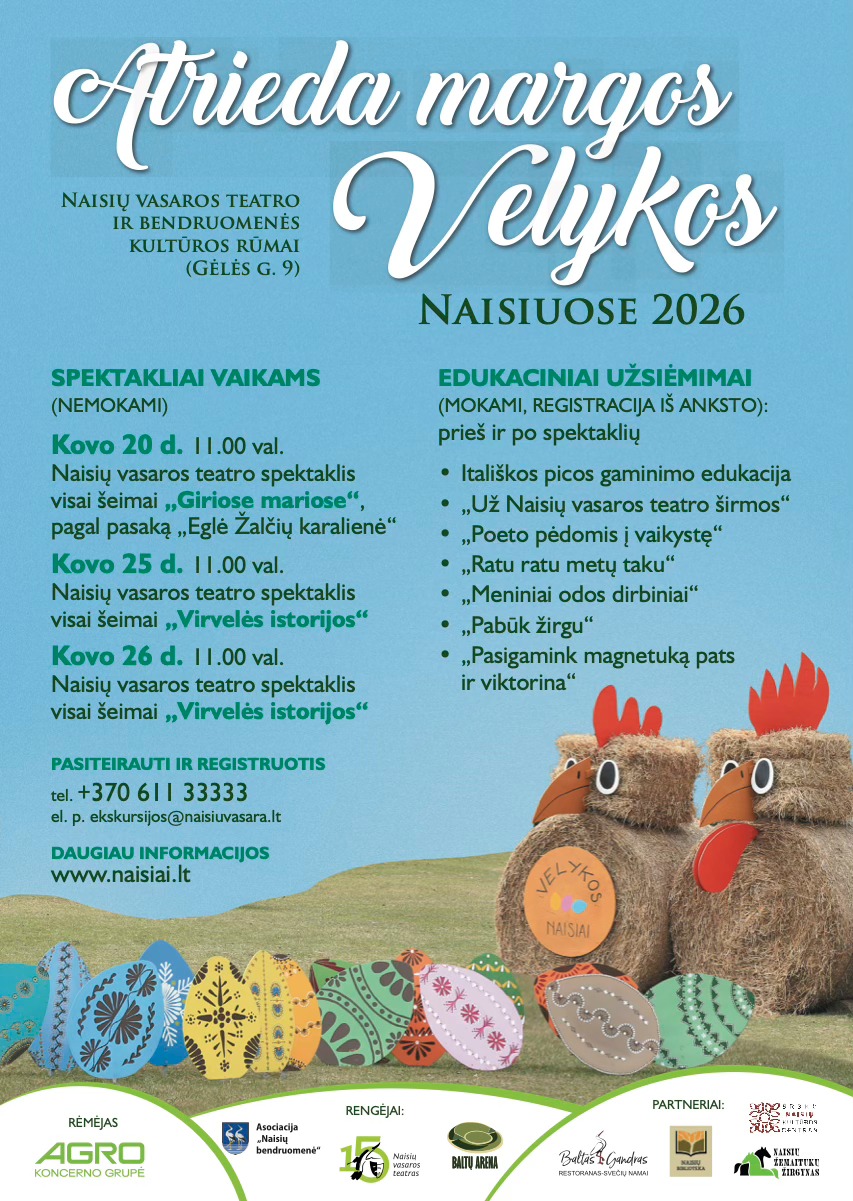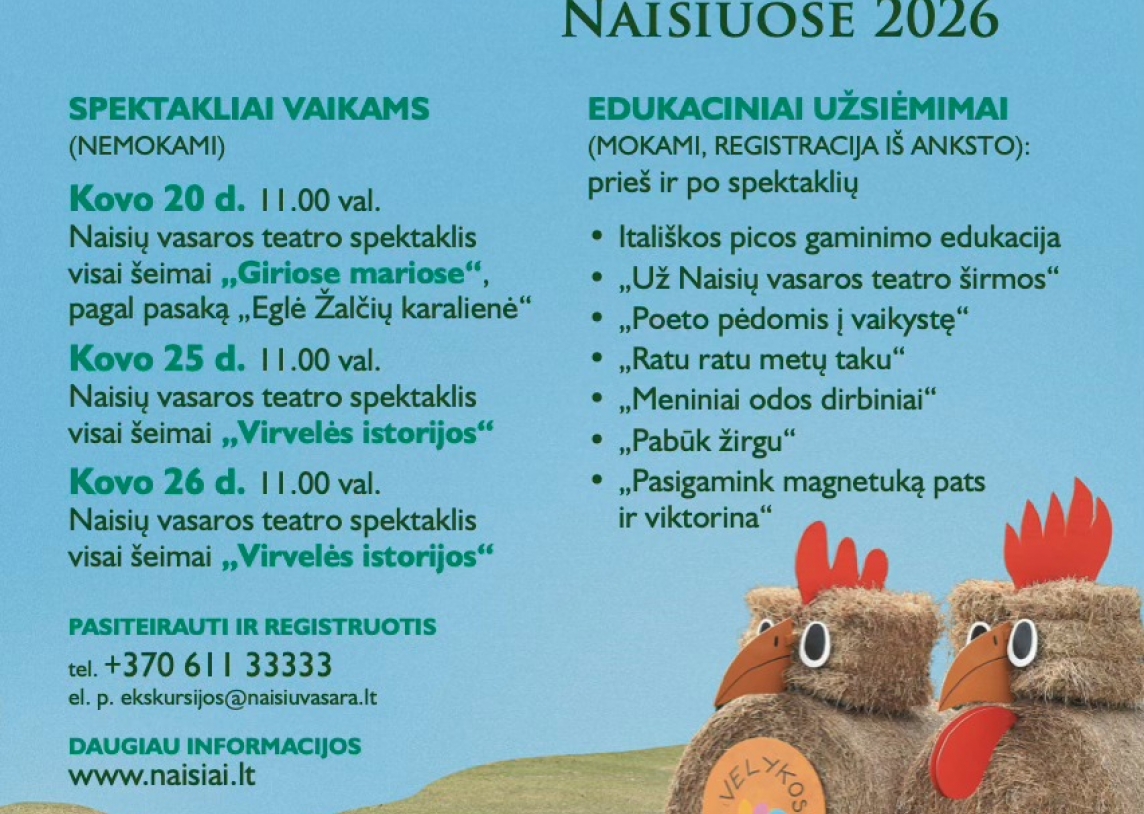 „Atrieda margos Velykos Naisiuose 2026”. KULTŪROS PASO programa. Kultūriniai edukaciniai užsiėmimai: „Poeto pėdomis į vaikystę” ir „Ratu ratu metų laiku” |