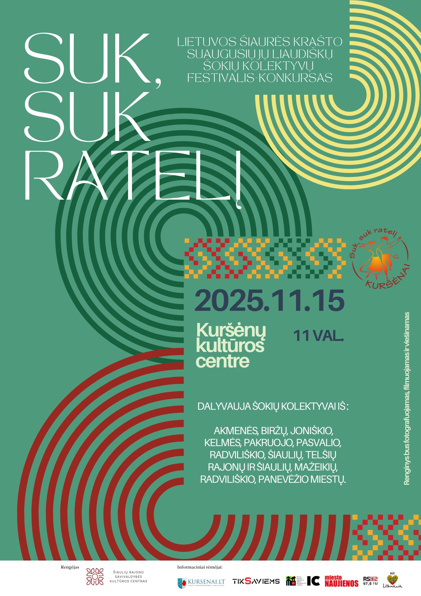 2025 m. lapkričio 11d. 11 val. 00 min. Lietuvos Šiaurės krašto suaugusiųjų liaudiškų šokių kolektyvų konkursas-festivalis „Suk, suk ratelį -  2025“