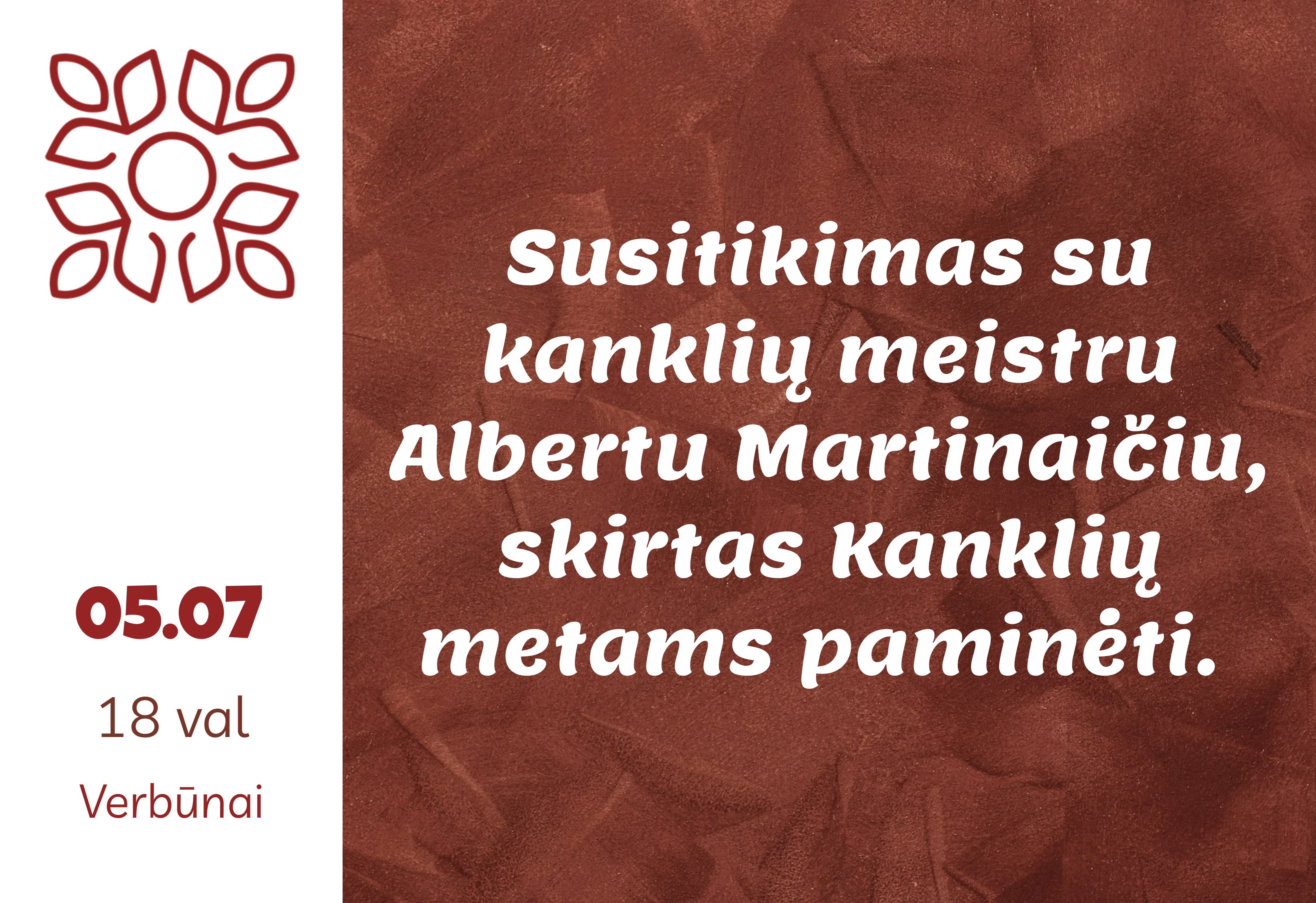 2026 m. gegužės 07d. 18 val. 00 min. Susitikimas su kanklių meistru Albertu Martinaičiu