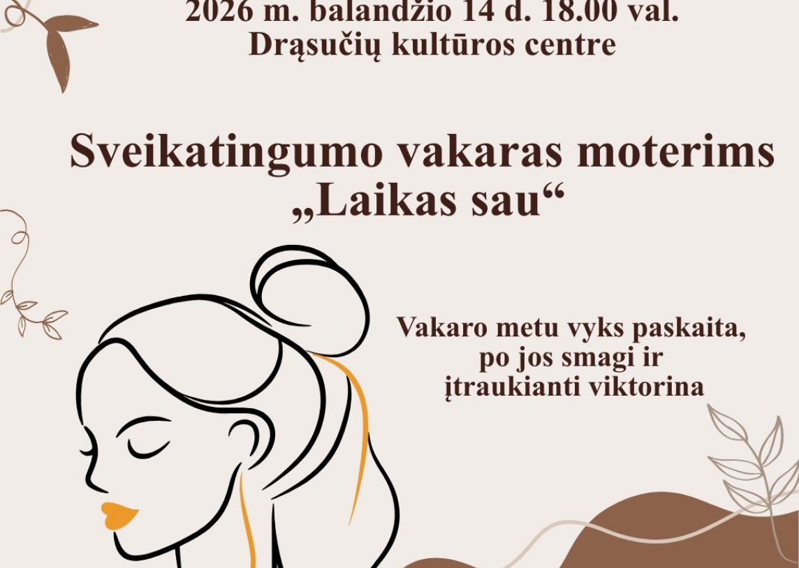 2026 m. balandžio 14d. 18 val. 00 min. Sveikatingumo vakaras moterims „Laikas sau“